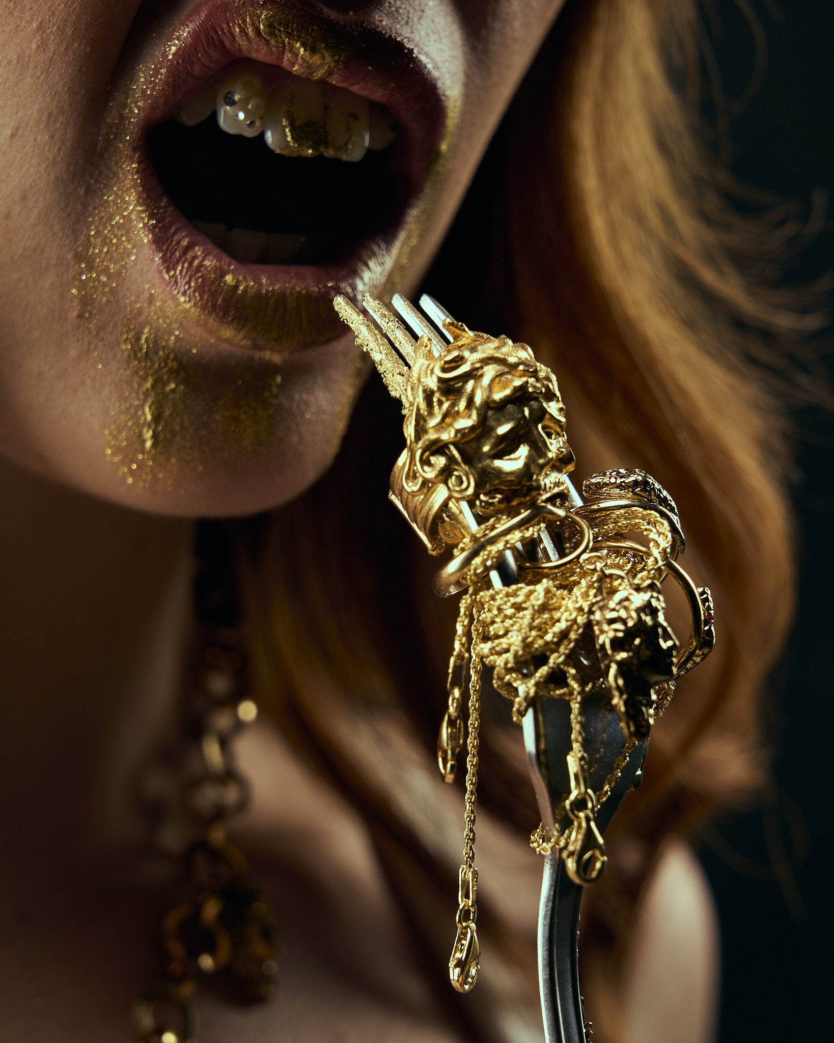 La metamorfosi continua. In questo secondo capitolo, Medusa si mostra nella sua forma più consapevole e regale. I gioielli diventano armature di seduzione e rinascita, in un’estetica che fonde classicismo e modernità.
